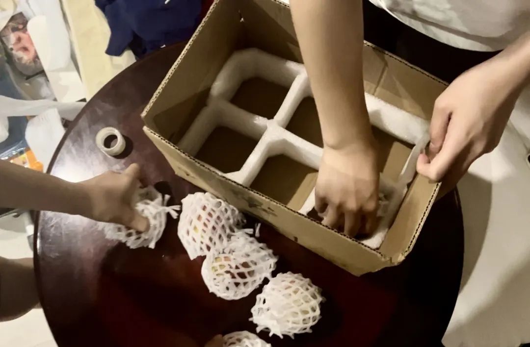 同时,实践队了解到水蜜桃防腐减损和抗低温冷害以延长其贮运期还亟待研究,便通过控制变量法,采用三种不同的支撑和衬垫物对部分桃子进行包装,并计算时间与距离,全程跟车运输,以探究最适合桃子贮运保鲜的包装形式,延长水蜜桃的贮运期限和“甜蜜”味道。桃子研究依然在路上,实践队将为实现高效运桃、理想保桃、放心享桃尽吾侪绵薄之力。
