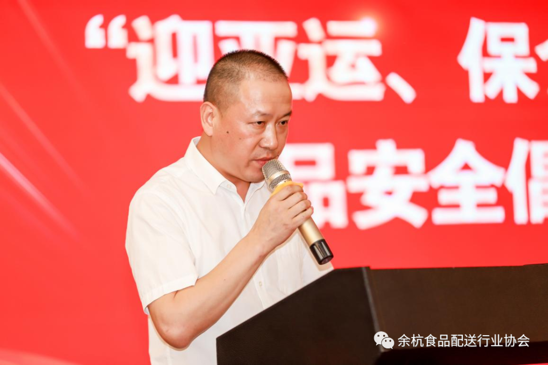 会议分为两个阶段,第一阶段为杭州市余杭区食品配送行业协会年度工作会议(暨“迎亚运、保食安”配送行业食品安全提升培训会)。