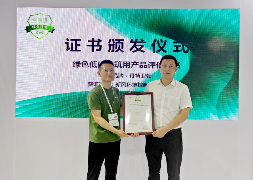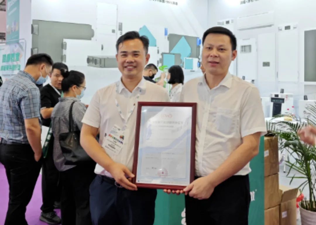 展会期间,CVC威凯为浙江丹特卫顿环境科技有限公司颁发了“绿色低碳建筑用产品评价证书”,为江苏净松环境科技有限公司和北京米微环保科技有限公司颁发“中国电器产品功能评价证书”。