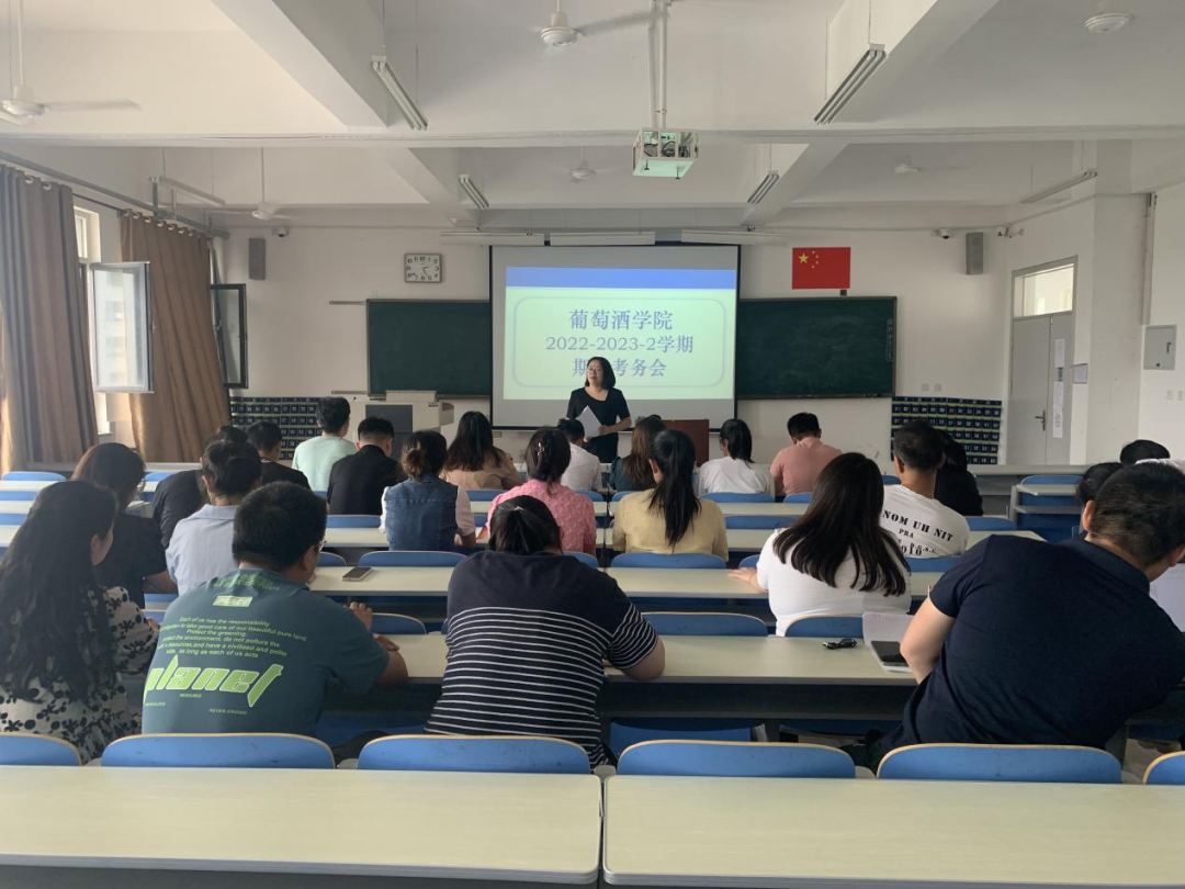 为保障学院期末考试的公正、公正开展和顺利进行,葡萄酒学院于6月25日在五教503召开了2022-2023学年第二学期期末考试工作会议。会议由葡萄酒学院教学副院长原兴倩主持,学院全体教师参加会议。
