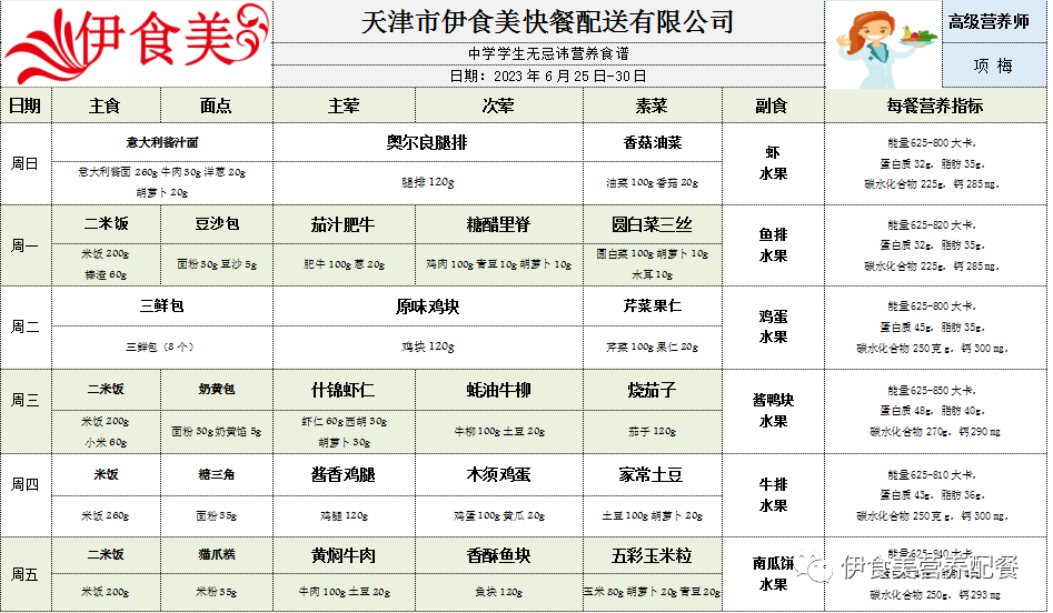 根据天气变化、市场原材料供应情况,菜品会有微调,以下菜谱展示仅供参考,具体用餐情况请以每天实际送餐为准,感谢理解!