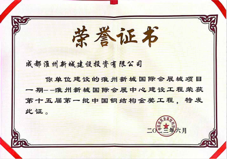 近日,淮州国际会展中心通过中国建筑金属结构协会评审,顺利取得了中国钢结构金奖。中国建筑工程钢结构金奖,简称“钢结构金奖”,是中国建筑钢结构行业工程质量的最高荣誉奖。