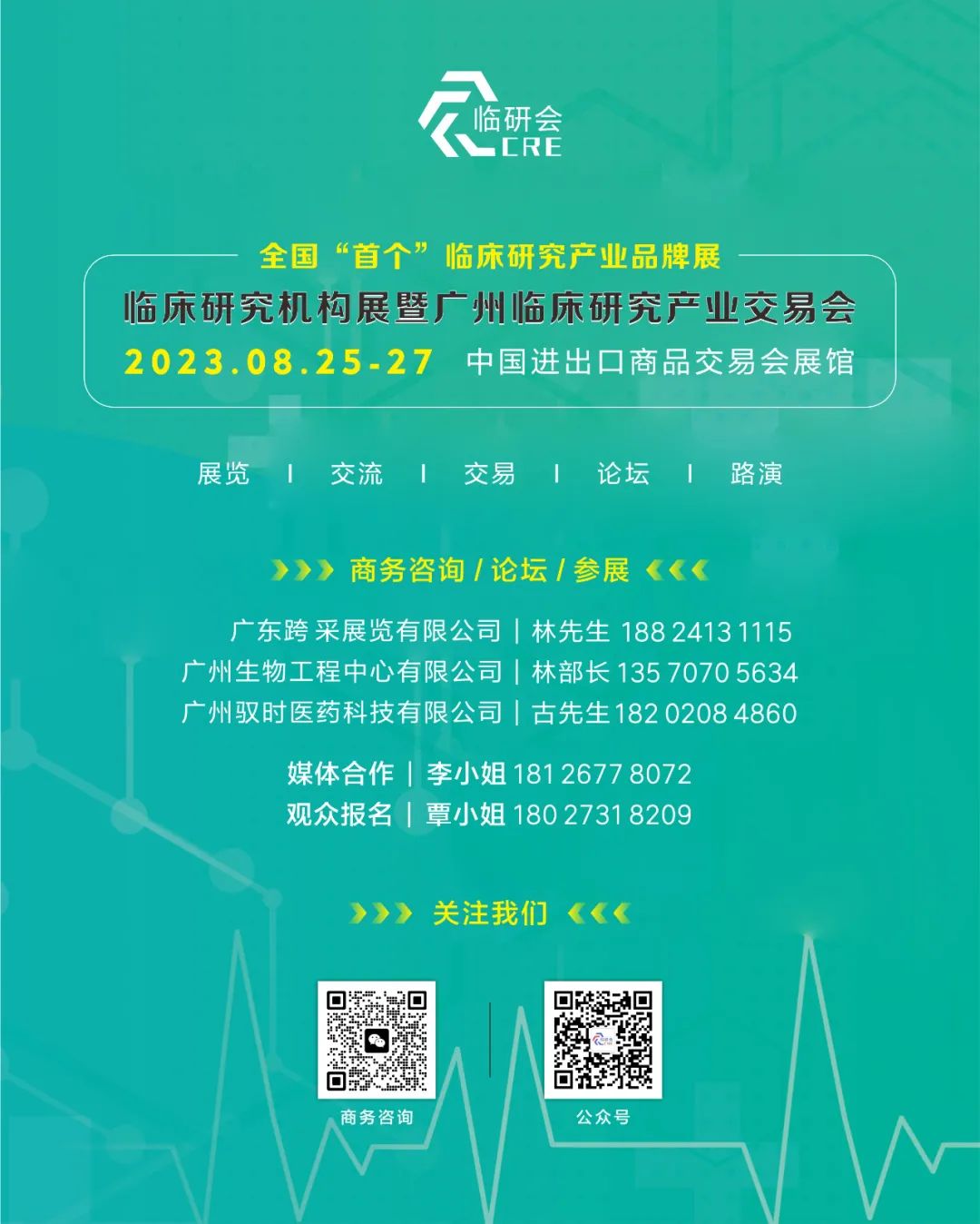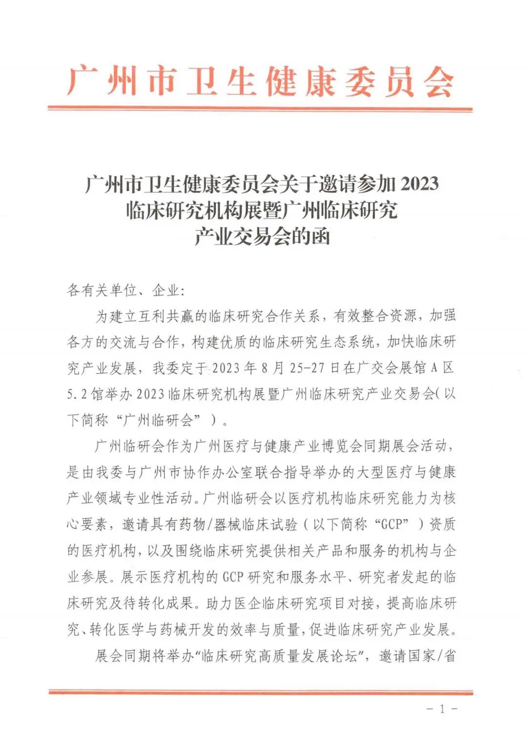 2023临床研究机构展暨广州临床研究产业交易会作为广州医疗与健康产业博览会同期展会活动,是由广州市卫生健康委员会、广州市协作办公室联合指导举办的大型医疗与健康产业领域专业性活动,也是国内首创的以医疗机构临床研究能力为核心要素,集展示、交易、交流、路演、论坛于一体的专业展会活动,助力医企临床研究项目对接,推进临床研究与成果转化一体化发展,有力促进我国临床研究产业发展。