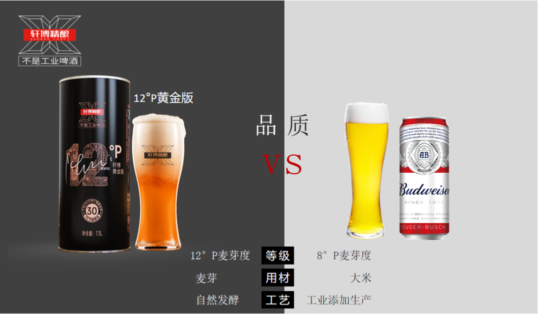 在国内,中高端啤酒的麦芽度大多在10°p左右(麦芽度指麦芽在啤酒中的浓度),轩博精酿高达12°p!