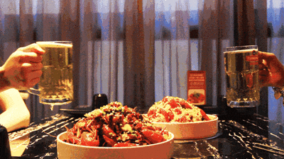 和好友相聚,一桌美食配美酒,大口吃肉举杯饮酒,幸福感爆棚!