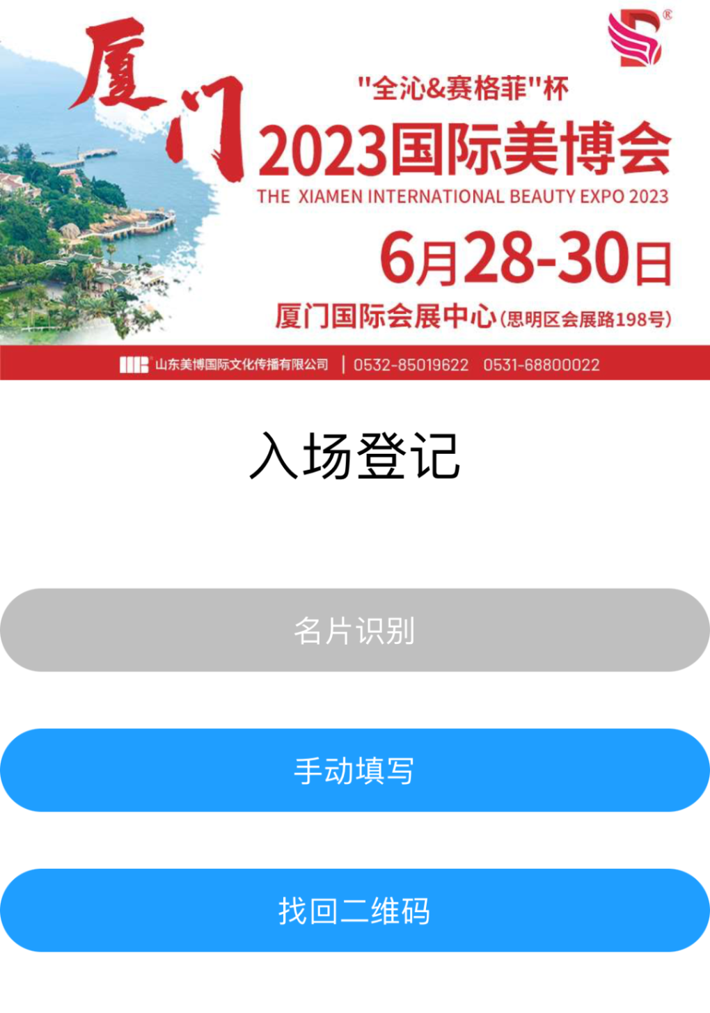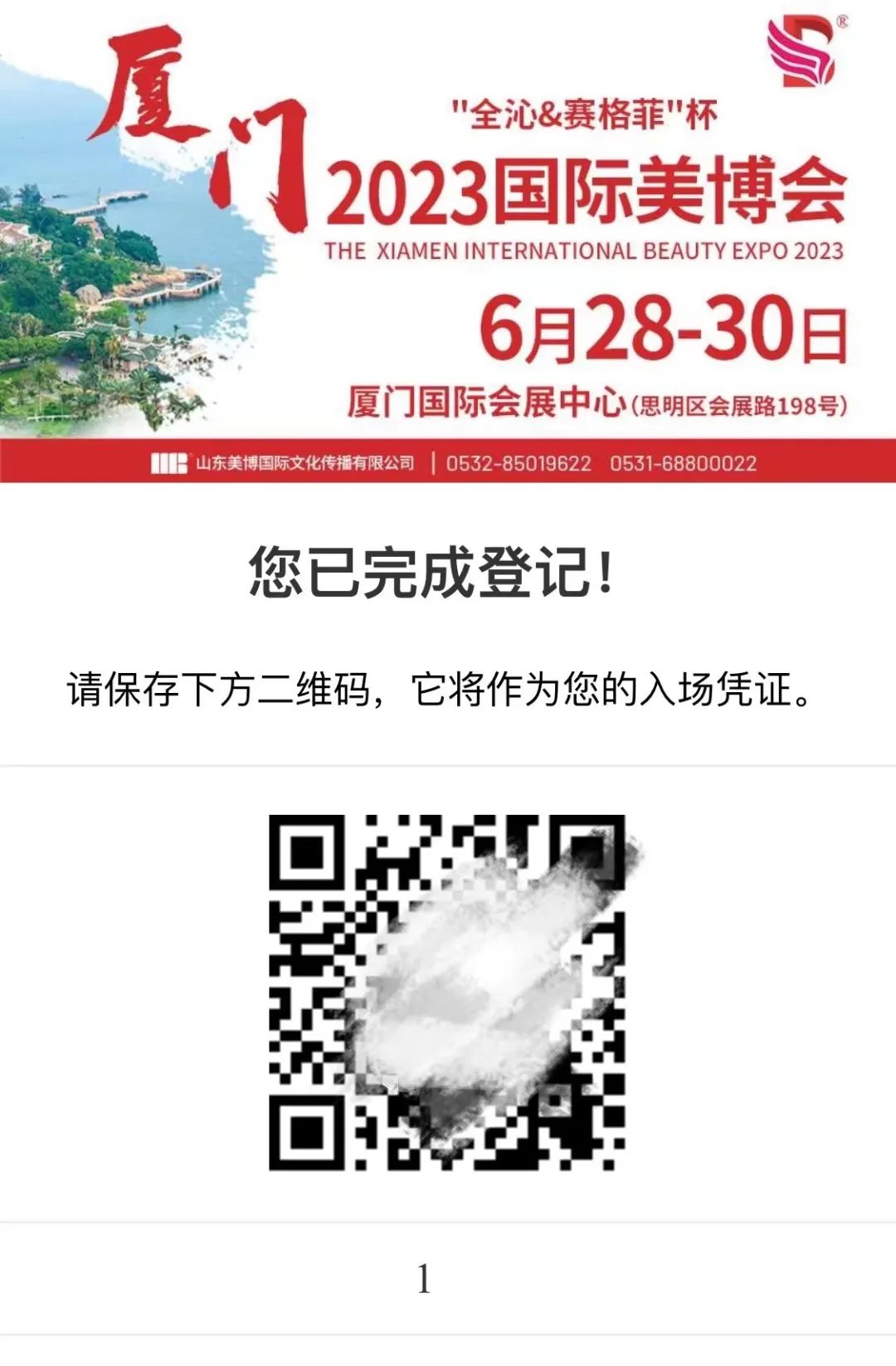扫描下方二维码,进入"全沁&赛格菲"杯·2023第14届厦门国际美博会预登记页面,根据提示,完成预登记(也可以进入厦门美博会公众号、美业百态公众号等预登记入口,完成登记报名)。