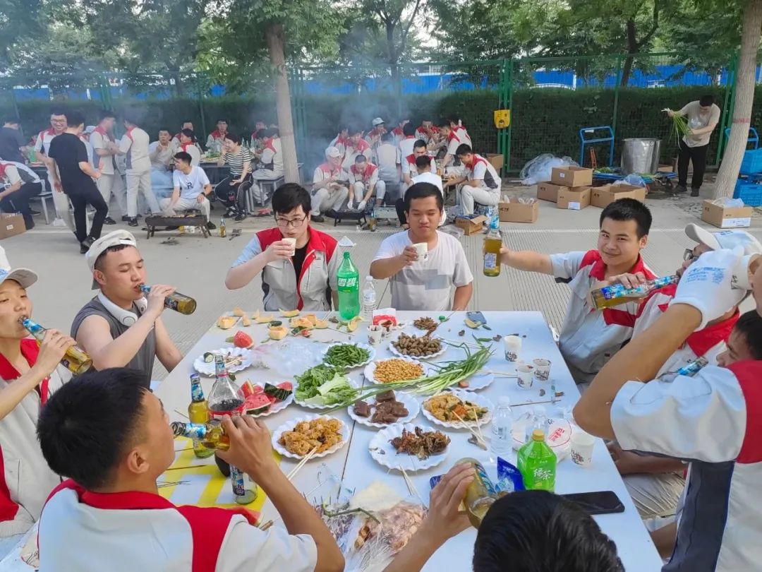 夏天炎热正当头,在端午节小长假即将来临前,组装车间组织员工进行自助烧烤聚餐。啤酒+烤肉,一起嗨不停!!