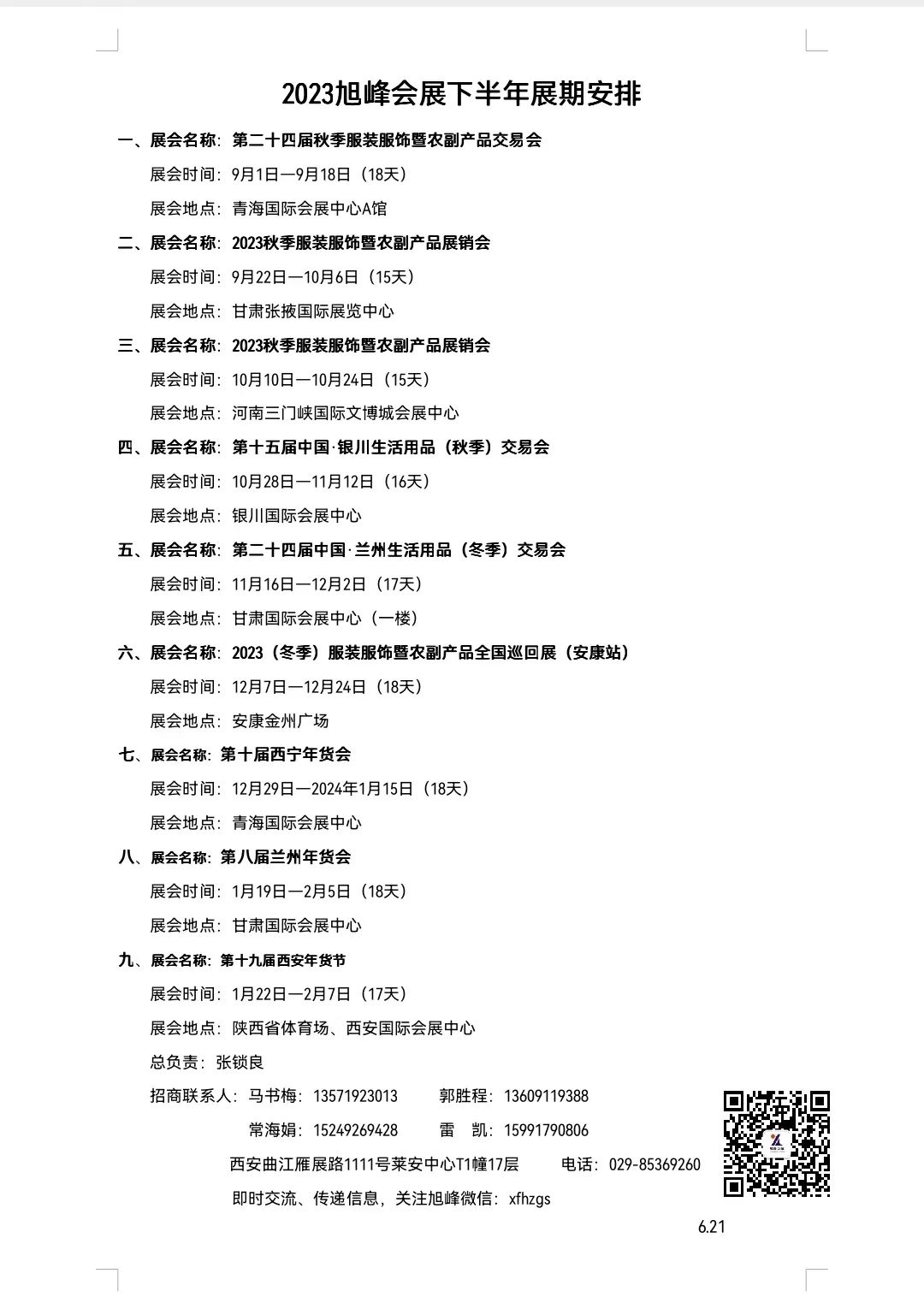 六、展会名称:2023(冬季)服装服饰暨农副产品全国巡回展(安康站)