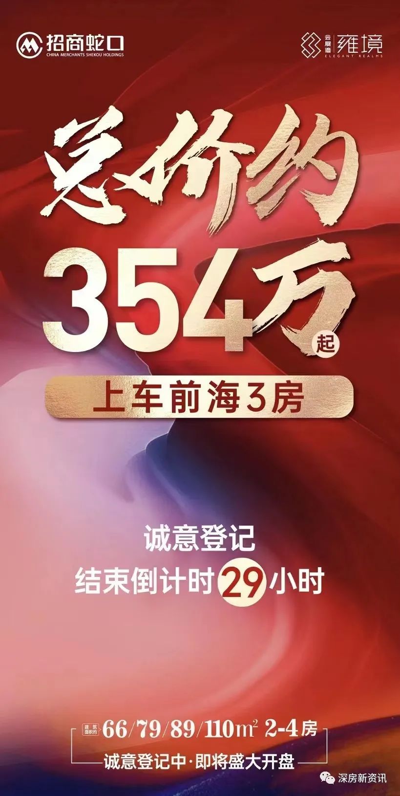 宝安国际会展片区的招商A301-0586宗地——会展湾雍境花园,将首推约547套66-110㎡2-4房!户型是66㎡两房一卫、79㎡三房一卫、89㎡三房两卫、110㎡四房两卫,其中79㎡和89㎡户型为主力户型。毛坯限价4.79万/㎡,已取证!即将开盘!