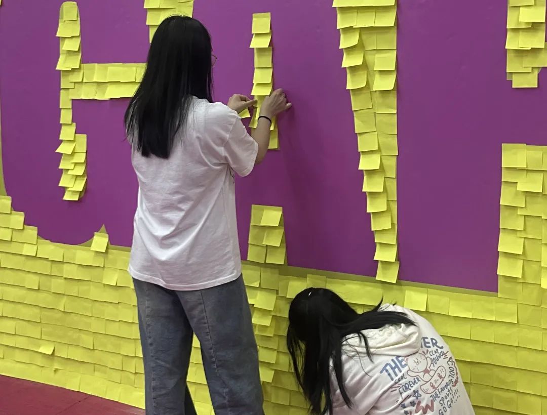 本次毕业展和摄影展吸引了大量的同学前来观展打卡。其中,巨幅悬挂便利贴拼接而成的字体“GAP”令观众无不驻足细观,为之震颤。这一块立体装置区域也成为了“网红打卡拍照胜地”,大家都在此处留下了纪念并打卡合影。