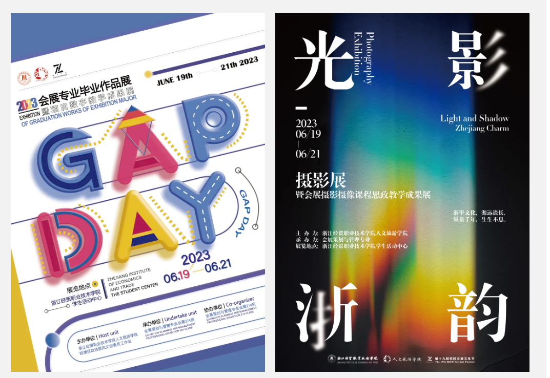 本次除了展出会展专业2023届毕业生的视觉设计、空间设计、摄影绘画等作品外,还新增了摄影展板块,展出相机记录下浙江近二十年来社会主义现代化建设的新成就、新变化。