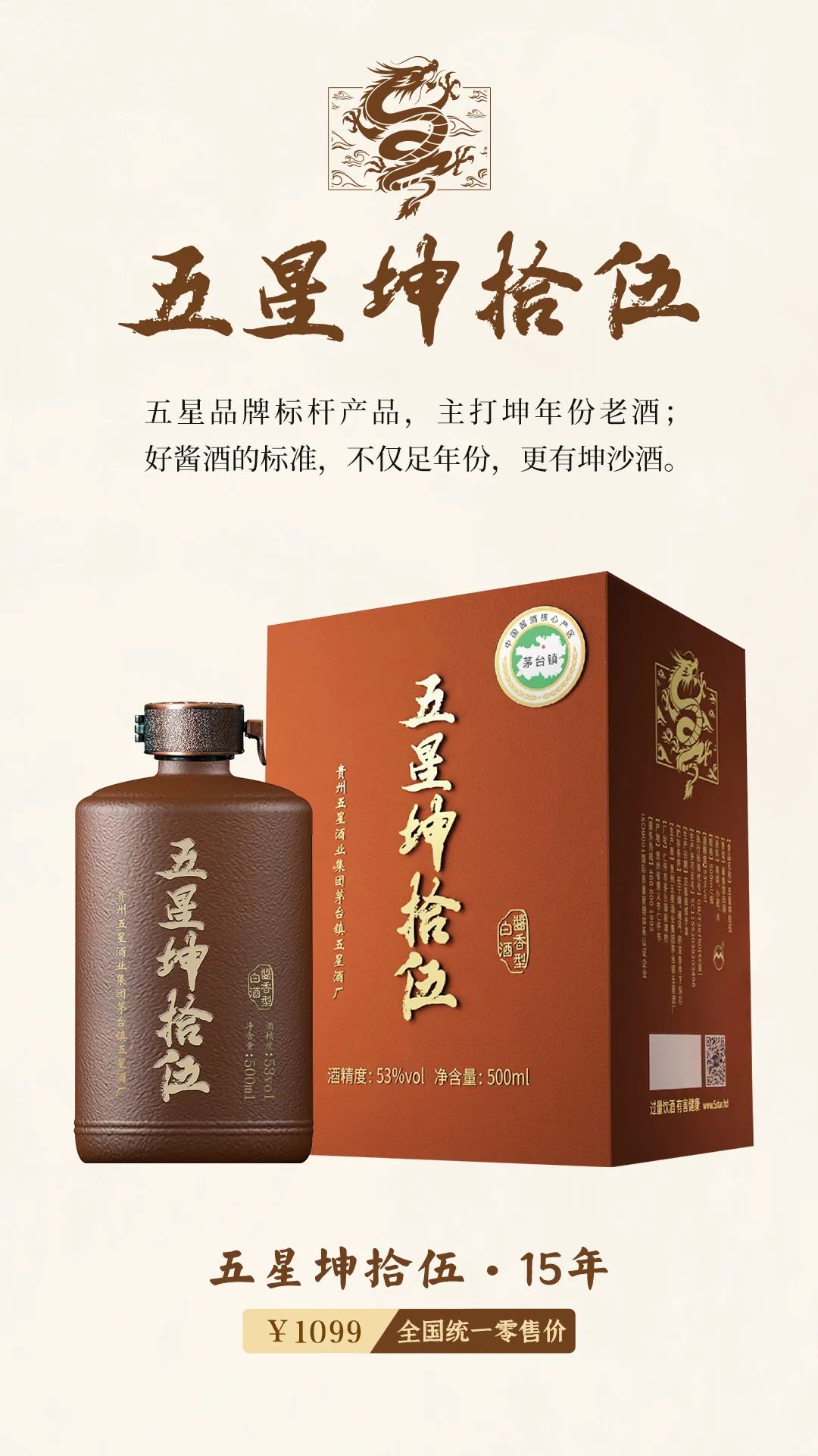 五星坤拾伍,不仅真年份,更有坤沙酒!五星品牌标杆产品,为大众提供高品质、高颜值酱酒,全维度输出中国酱香白酒价值,是拥有超高性价比的年份老酒!