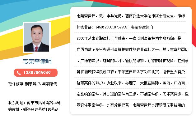 韦荣奎律师,广西酒驾犯罪律师,现执业于广西冠江律师事务所,法律功底扎实,执业经验丰富,秉承着“专心、专注、专业”的理念,承办每一项法律事务、每一个案件。所办理的案件,获得当事人的高度肯定。在工作中一直坚持恪守诚信、维护正义的信念,全心全意为客户提供优质高效的法律服务。
