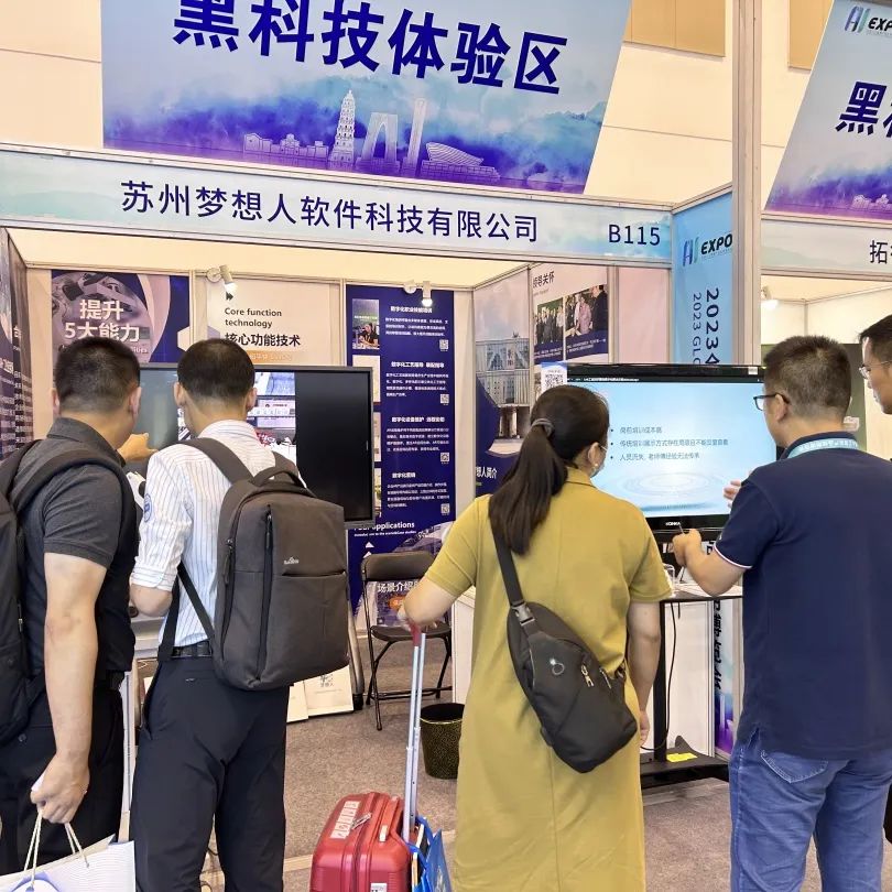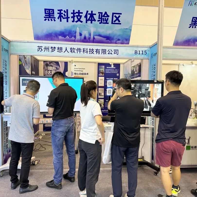 梦想人科技(MXR)的B115展台位于黑科技体验区。现场,多家来自京津冀、江浙沪皖的工业制造型企业代表、企事业单位等人员深度参观MXR“AR数智平台”展区,对产品情况、功能亮点、使用场景等情况进行交流洽谈。