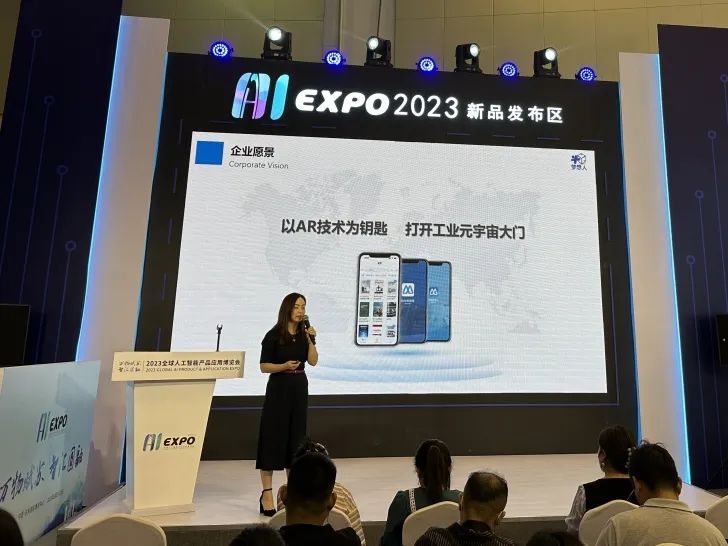 值得一提的是,MXR的企业知识服务SaaS管理平台的核心产品“AR数智平台”首次亮相该展会。在新品发布会的现场,集AR检索、多云存储、远程协助、融媒体展示等功能于一体的AR数智平台吸引众多目光。MXR副总裁戴瑞琦女士,深入浅出地向现场观众介绍了MXR的两大核心产品:AR数智平台、数智编辑器,全面介绍了MXR产品的“低成本、短平快、SaaS化”核心优势及核心功能。