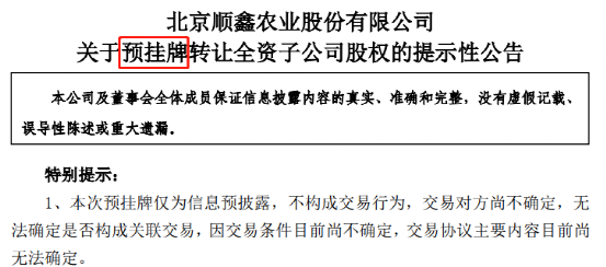 但其表示,本次预挂牌仅为信息预披露,不构成交易行为,交易对方尚不确定,无法确定是否构成关联交易,因交易条件目前尚不确定,最终成交价格、支付方式等协议主要内容目前尚无法确定。