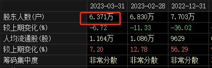 今年一季报显示,截至3月31日公司有股东6.37万。而公司最新市值为230亿。