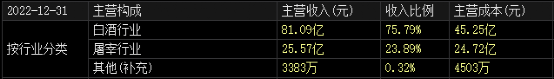 根据顺鑫农业2022年年报,其实现营业收入116.78亿元,同比下降21.46%;归母净利润亏损6.73亿元。三大块业务中,白酒营收81.09亿元,占到公司总营收的69.44%,同比减少20.70%;猪肉产业营收27.23亿元,占整体的23.32%,同比减少24.4%;顺鑫佳宇为核心平台的房地产业务则实现营收6.76亿元,占比5.78%,同比减少21.75%。