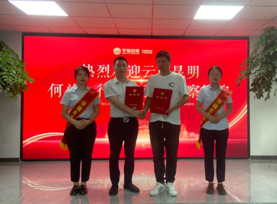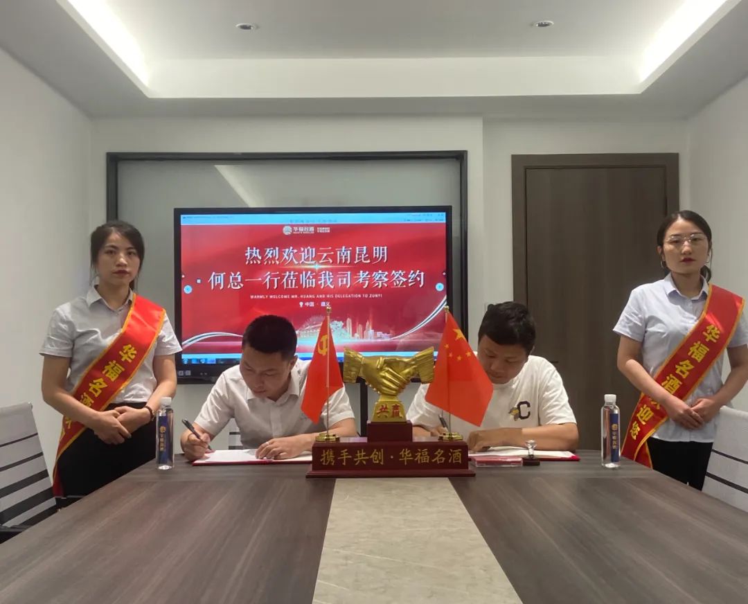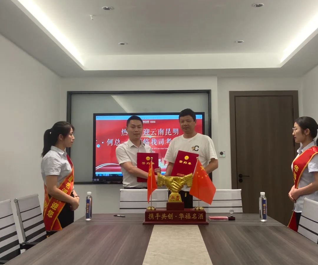 2023年6月27日下午,来自云南昆明市五华区的何总一行莅临我司:华福名酒全国运营总部-遵义考察代理事宜