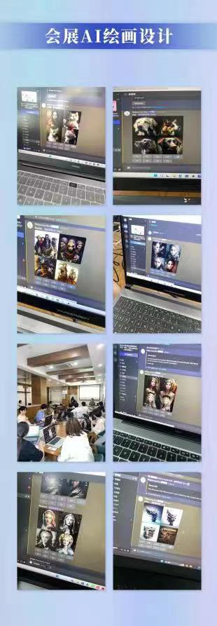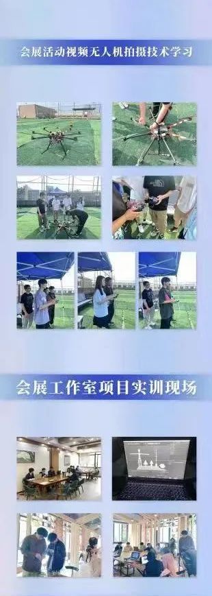 本学期的工作室成员分别来自21会展班、22会展A班、22会展B班,22会展五年制班这四个班级。工作室在本学期共开展了12次活动,学习与实践内容包括H5会展技能、会展展台3D模型设计、AI绘画设计、平面拍摄技术、无人机拍摄技术实训、“双运”短视频大赛辅导、第二十三届浙江省大学生多媒体作品设计竞赛辅导等。