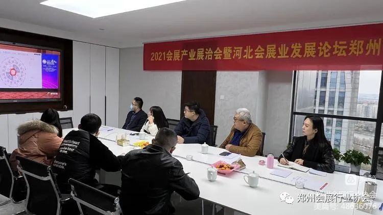 本次分会场在郑州会展行业协会常务副会长单位——郑州天天会展服务有限公司会议室进行。协会会长岳增浦、秘书长刘亚娜、鑫宇佳创会展集团、河南中展动力有限公司、郑州万泽展览展示有限公司、瑞城展览服务有限公司、汇卓展览策划有限公司、甲方乙方展览策划有限公司、郑州天天会展服务有限公司、郑州欧亚国际展览有限公司、郑州雅图展览服务有限公司、河南前方会展服务有限公司、郑州瑞翔展览有限公司、驻马店中建钢构新里程建设有限公司、河南歌宇会展服务有限公司、郑州盛博文化传播有限公司、郑州海名汇博会展策划有限公司等公司代表共同出席了郑州分会场的视频直播连线会议。