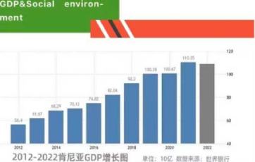 非洲目前占全球纺织品市场份额约为16%,具体到服装和鞋类,该市场总额约310亿美元。据国际知名商业咨询机构statista的报告,2022-2025年,服装市场的复合年增长率为16.46%。市场优势:在服装领域,预计到 2025 年消费者数量将达到 3.305 亿,每位消费者消费金额预计为 38.17 美元。21世纪以来,肯尼亚经济进入高速增长阶段。2021年,肯尼亚GDP总量突破1100亿 美元,人均GDP突破2000美元。2000年-2021年,GDP平均年增长率高达7%。劳动力优势:非洲各国人口结构较年轻,出生率高。劳动力相较于国内价格更低,在人力成本上具有优势。