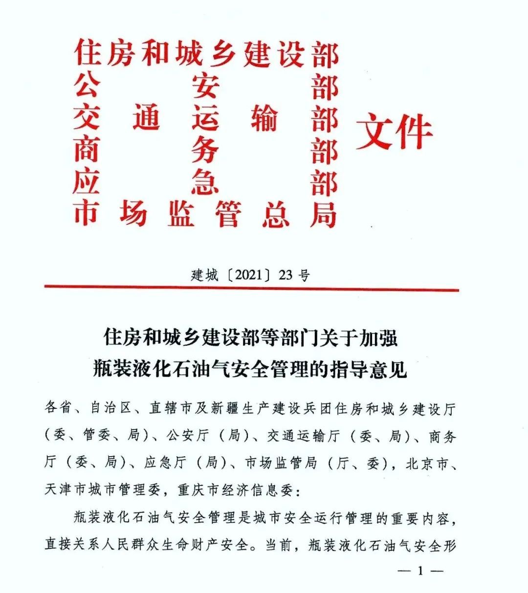 关于加强瓶装液化石油气安全管理的指导意见((建城〔 2021〕 23号))