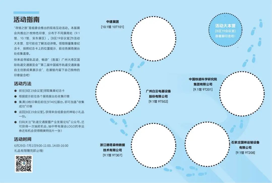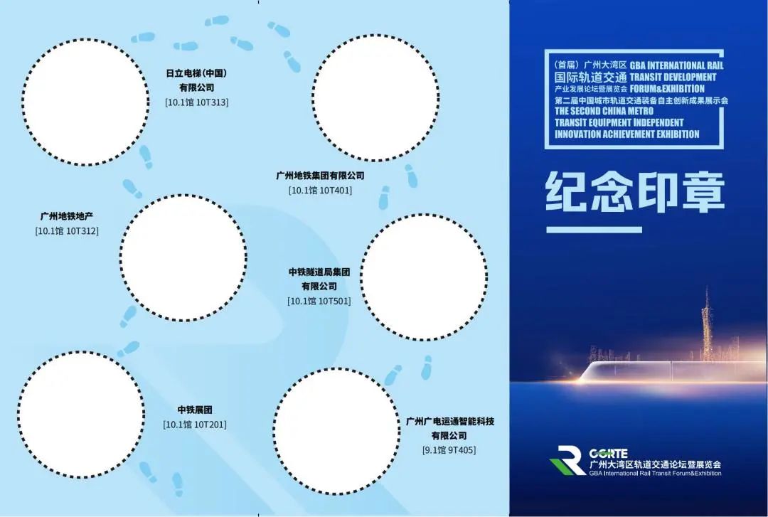 快来追寻城轨足迹,畅游“(首届)广州大湾区国际轨道交通展览会”“第二届中国城市轨道交通装备自主创新成果展示会”,在展馆内留下自己独特的印章留念吧!
