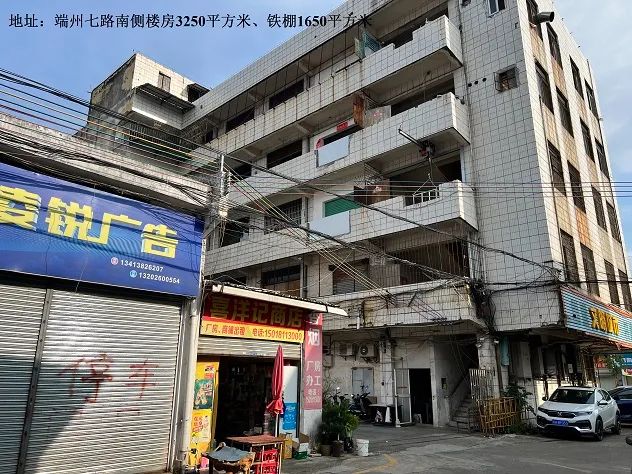 该物业位于肇庆市端州区端州七路南侧楼房、铁棚,租期15年。物业面积约4900㎡(其中楼房3250㎡,铁棚1650㎡),交易底价为每月39366元。每次报价增幅不低于1000元,价高者得。