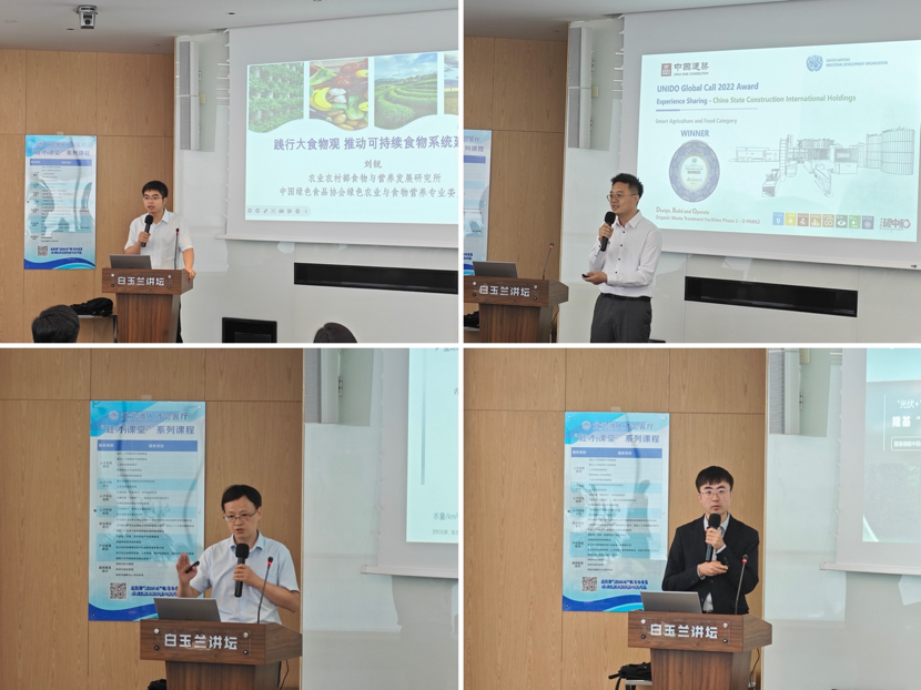 Scholars and entrepreneurs from the food industry discussed "low carbon and low water footprint sustainable development in the food industry". Liu Rui, Associate Researcher of the Institute of Food and Nutrition Development, Ministry of Agriculture and Rural Affairs, delivered a keynote speech titled "Practicing the Big Food Vision and Promoting the Construction of Sustainable Affairs System", drawing inspiration from the sustainable development of the food industry. Dr. Cui Yanxiang from CIG, as a representative of UNIDO Global Call 2022 Agri-Food Champion Project, introduced CSCI's innovative technology in organic resource recycling. He shared his views on "sustainable water management". Xie Xiaobo, Director of Longi Green Energy Technology Co., Ltd. brought shared the importance of photovoltaic power in achieving SDG7 energy and SDG13 climate change related goals.