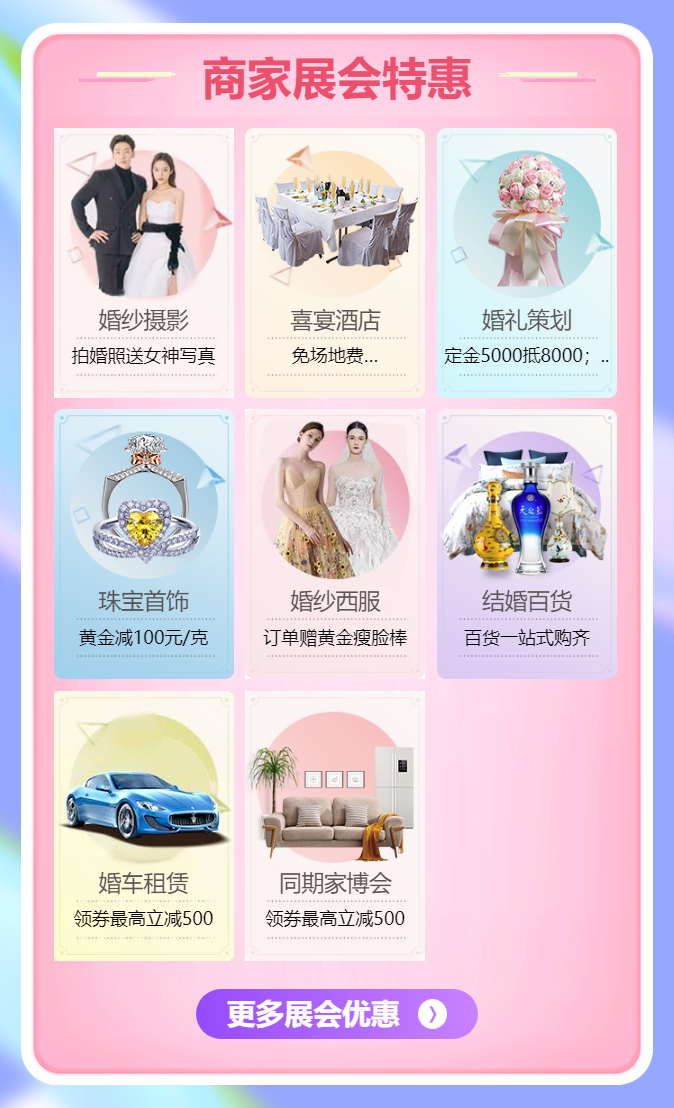 4、现金补贴:展前新人提前在6月30日24点前婚芭莎app上领取现金补贴。