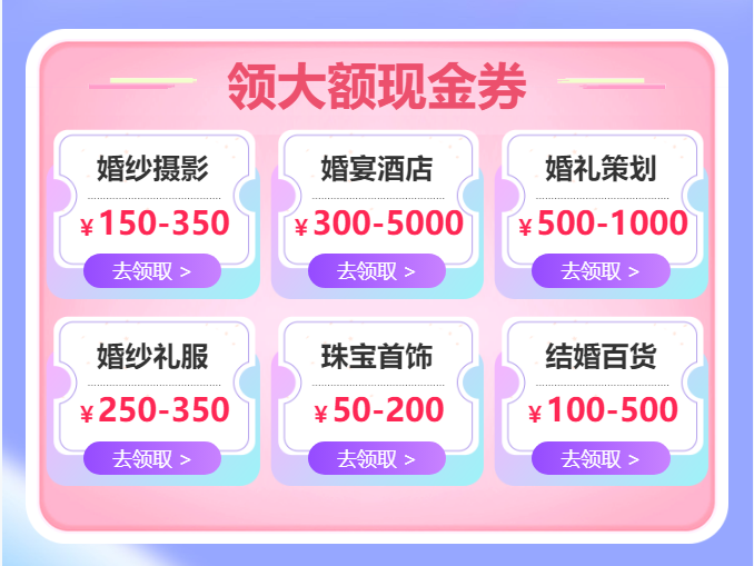 婚纱、婚戒、婚庆、婚宴酒店、伴手礼、婚纱摄影、喜糖喜酒、新婚家纺、家居用品......