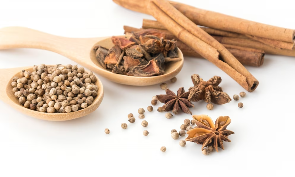 香料类香气如丁香、肉桂、茴香、八角、草果、豆蔻、花椒、肉豆蔻、姜黄、番红花、胡椒等,通常是由葡萄品种中的化合物产生,或者是在酿造和陈年过程中添加的调味料产生的。
