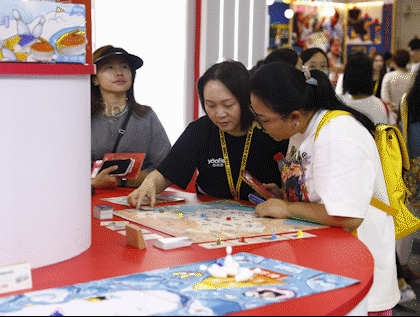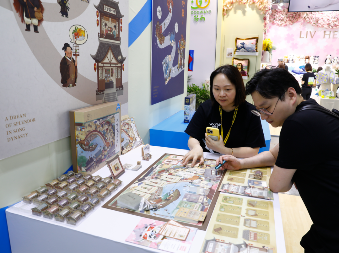 现场的朋友越来越多,这不旁边已经开始了叮叮当当的“收租”生活。几个朋友围在一起玩起了《钱儿响叮当》,互坑玩闹,氛围拉满;那边又打开《山河七级》,一起游览起了中华奇迹;还有大小朋友怎么都拒绝不了的《冰壶总动员》,大家各显身手,在桌游世界乐开了花......