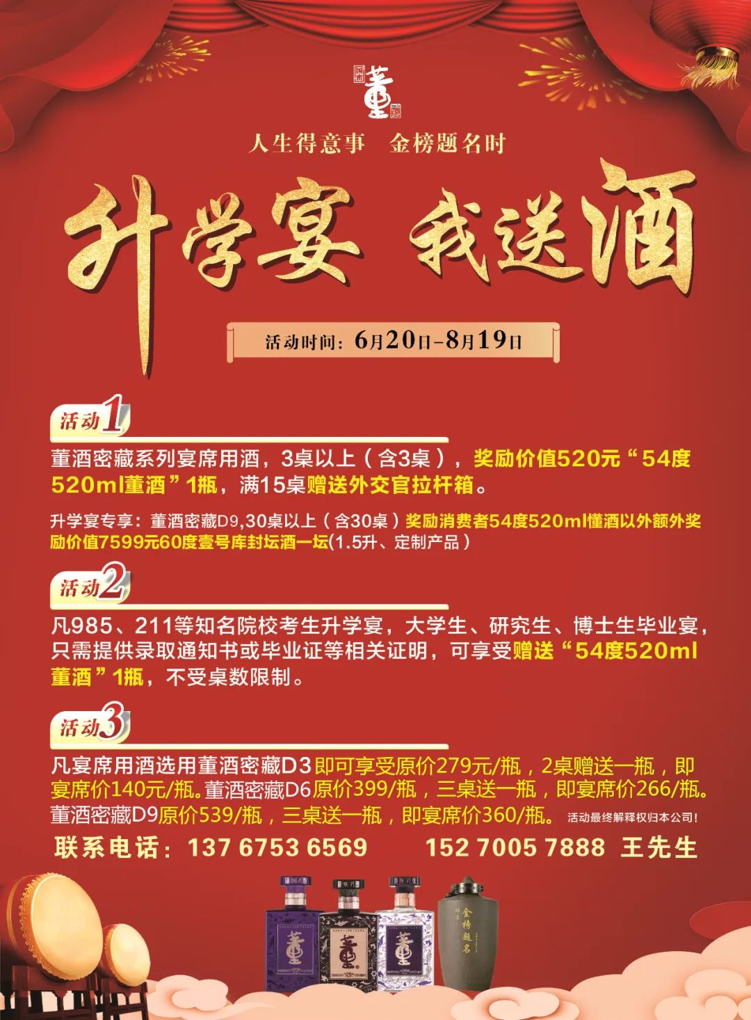董酒最懂铜鼓莘莘学子,八大名酒,你做宴席我送酒,送旅游!
