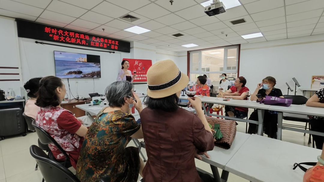 “红酒喝的多,平时都是自己在家里小酌,今天和邻居们坐在一起品酒还是头一次,感受非同凡响,特别开心!”家住光大锋尚园社区的居民在社区活动室,一边品酒一边点赞。像这样的文化主题活动,每个月都会有很多机会,品种丰富,在居民心中,已经成为社区的一块“金字招牌”。