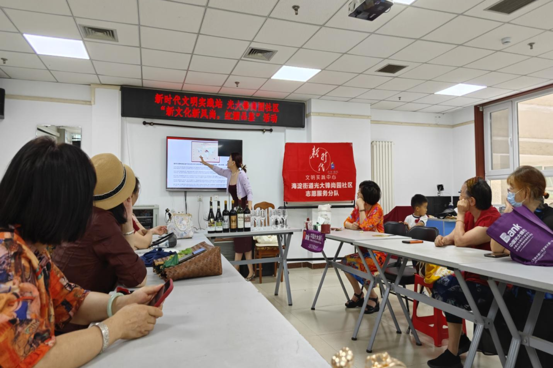 社区吴书记表示,品鉴会、插花、绘画、手工制作等各类活动会针对社区居民需求,“量身”配送。从居民需求出发,提升生活品质,增添生活情趣,本次品鉴会光大锋尚园社区特邀高级品酒师带来了一场别开生面的“红酒品鉴活动”。接下来让我们看看热闹的活动现场吧!