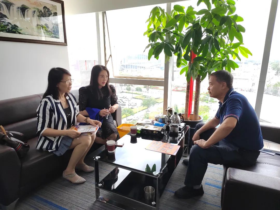 6月25日上午,东莞市食品行业协会副秘书长侍丹淇、东莞思朗食品有限公司(以下简称“思朗食品”)、东莞市星汇云海会展服务有限公司董秘张福兴莅临我协会座谈交流,受到了邹秘书长和全体工作人员的热烈欢迎。
