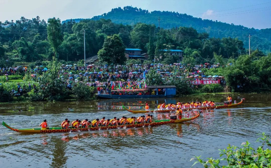 赛龙舟,是端午节的主要习俗。相传起源于古时,楚国人因舍不得贤臣屈原投江死去,许多人划船追赶拯救。他们争先恐后,追至洞庭湖不见踪迹。之后每年五月五日划龙舟以纪念之。人们借划龙舟驱散江中之鱼,以免吃掉屈原的身体。竞渡之习,盛行于吴、越、楚。