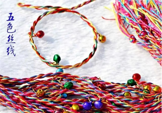 应劭《风俗通》记载:“五月五日,以五彩丝系臂,名长命缕,一名续命缕,一命辟兵缯,一名五色缕,一名朱索,辟兵及鬼,命人不病瘟”。