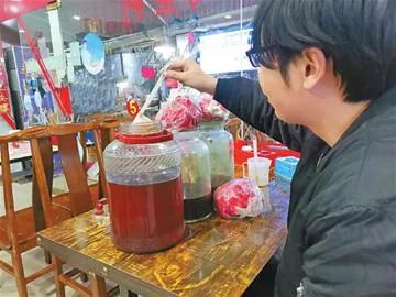 近日,记者来到位于成都市成华区双林北支路的一家名为“添添家常菜”的餐饮店,看到在收银柜台上摆放了1坛散装白酒和4坛自制泡酒。店员称:“这些酒都是店里自己泡的,价格在50-60元/斤。”