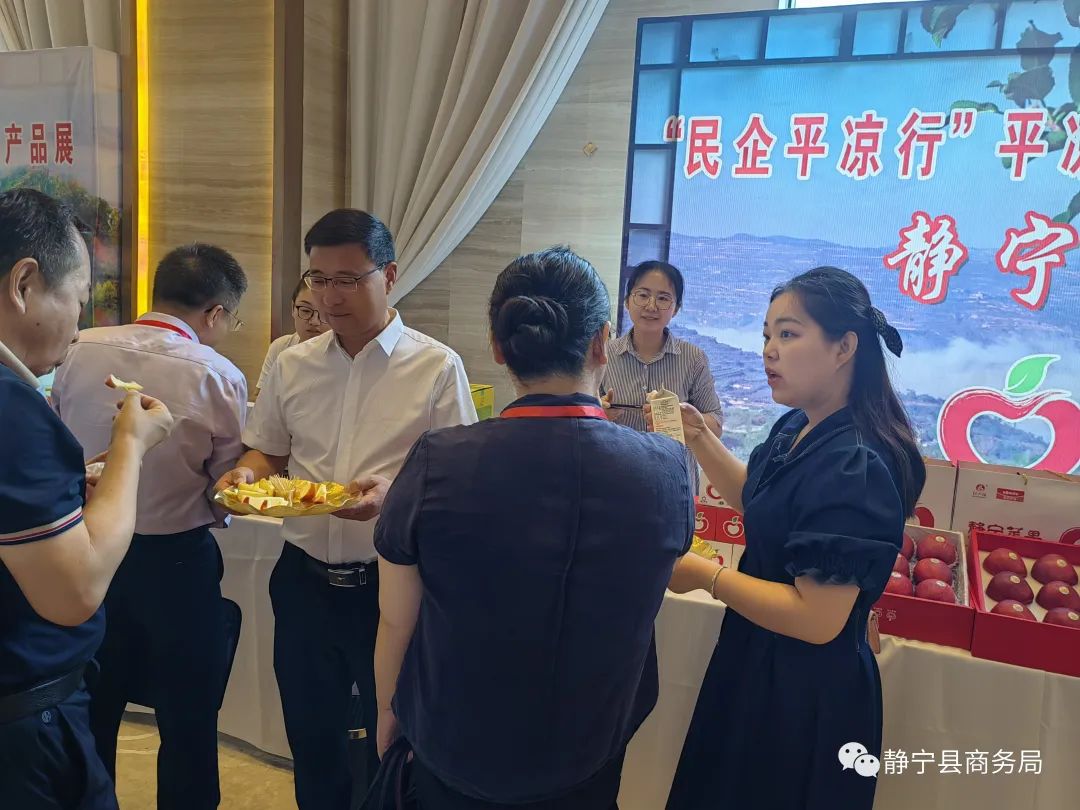 6月27日,“民企平凉行”特色产品展示展销活动在平凉广成大酒店国际会议中心隆重举行,我县精选4家企业参展,在静宁农特产品展位处,企业工作人员向采购商以现场讲解、产品展示、免费品尝的方式详细介绍了我县的特色产品,并赢得采购商和当地市民的一致好评。