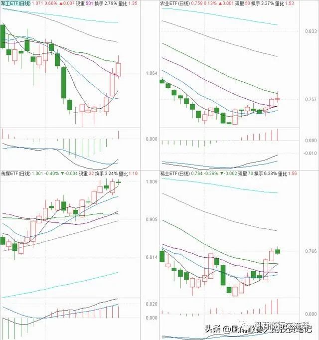 我认为:猪肉在20天线和30天线的窄幅区间波动,上影线与下影线说明多空平衡,目前还是超跌反弹状态;农业冲高至30天线后回落,但并没有失守20天线,震荡区间也很小,只属于窄幅震荡而已。