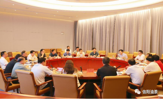 2023年6月24日,信阳市“两茶一菜”绿色食品产业融合发展座谈研讨会在信商之家举行。座谈邀请了“两茶一菜”相关的协会商会、高校专家教授、骨干企业代表、市有关职能部门负责同志参加座谈研讨,共商“两茶一菜”绿色食品产业融合发展大计。市人大常委会主任谢天学,市委常委、副市长李俊,市人大常委会原副主任、信阳菜文化研究和产业发展促进会会长杨明忠等领导同志出席会议作出指导。