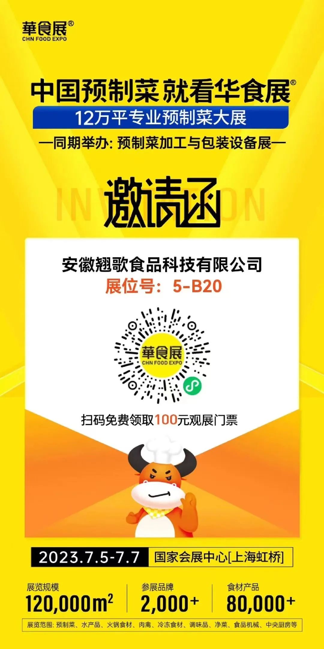 您好!非常感谢您长期以来对公司的信任和支持。我司将参加“上海華食展”,届时我司将携带全系列产品参展,诚挚邀请您莅临我司展位观展考察指导!