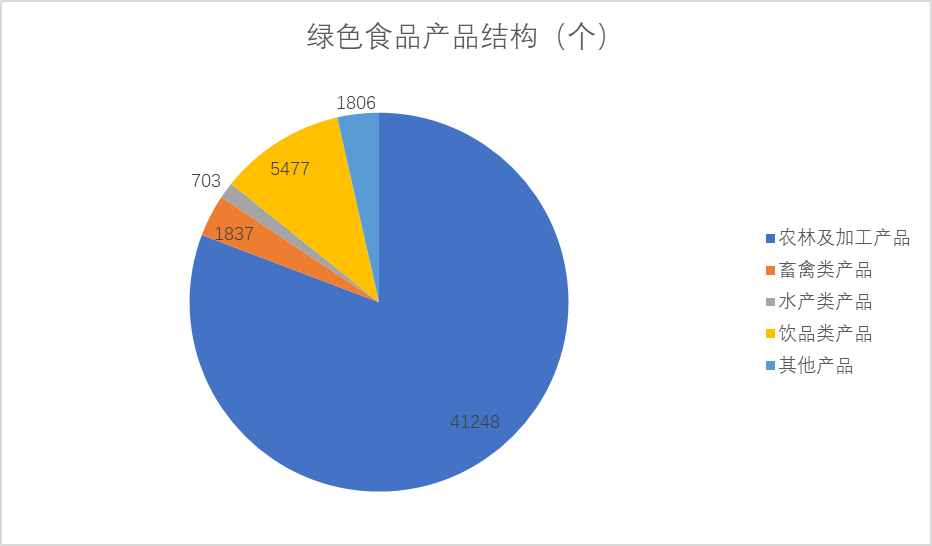 绿色食品产品结构中,2021年农林及加工产品41248个,占总数的80.77%,占比最大;饮品类产品5477个,占10.72%;畜禽类产品1837个,占3.60%;其他产品1806个,占全国绿色食品产品总数的3.54%;水产类产品703个,占全国绿色食品产品总数的1.38%。