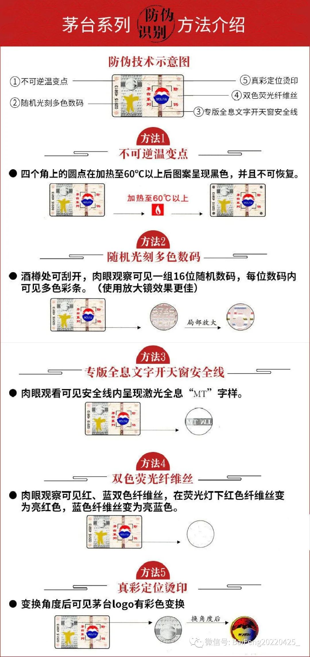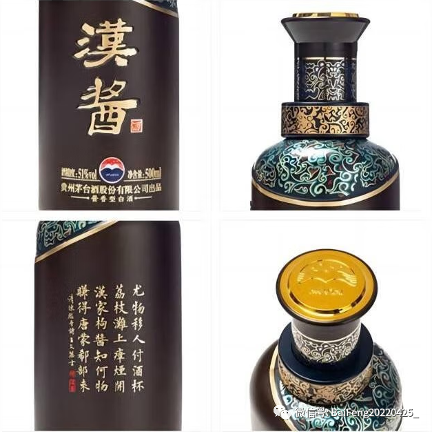 贮存条件:阴凉、干燥、密封保存; 汉酱酒(3.0)作为茅台酱香系列酒的战略单品,在酱香系列酒的产品战略中担任着一个关键角色,它担负着茅台酱香酒在500元到1000元价格带中彰显品牌力量,体现“茅台酱香,股份出品”的高品质的责任;汉酱在次高端拥有经营了十多年的市场基础,高品质铸就了好口碑,产品升级为汉酱3.0后,在价格带中具有很强的竞争实力。 汉酱酒(3.0)在次高端中不仅具有品质和品牌上的优势,在文化上同样具有强大的张力;与茅台酱香系列酒中大部分以凸显“茅台”品牌的产品不同,汉酱的品牌故事更加源远流长,从汉武帝评价“甘美之”枸酱酒,到如今的茅台酒,两千多年的时间背后,是文化和技艺的传承,作为茅台酱香酒公司的主力产品,汉酱自诞生那天起,就肩负着“传承酱酒古法酿造技艺,守护茅台品牌文化传奇”的责任,也由此形成了汉酱的文化根脉。 本公众号不向未成年人售酒,饮酒后请勿驾驶机动车;百丰酒业专注于茅台酒投资、收藏、鉴定等,立志详解每一款茅台酒;关注我,带您了解最全面的茅台酱香酒系列和最新的茅台鉴定技巧;另附上茅台酱酒系列酒的基础防伪方法,具体如下↓↓↓: