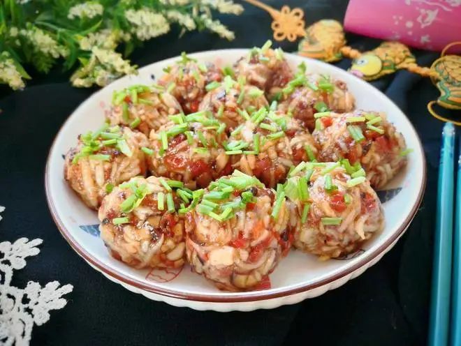 清蒸肉、红烧老南瓜、紫菜蛋花汤、珍珠香米饭