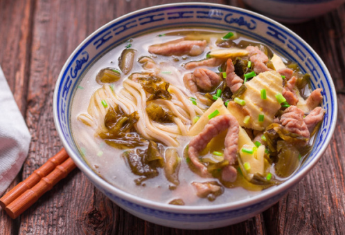 红烧青菜肉丝汤