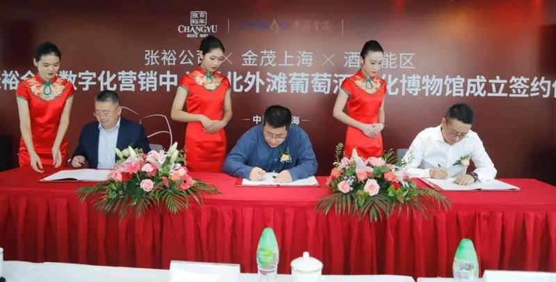 7月31日,“张裕公司X金茂上海X酒功能区”张裕全球数字化营销中心暨北外滩葡萄酒文化博物馆成立签约仪式在上海举办。